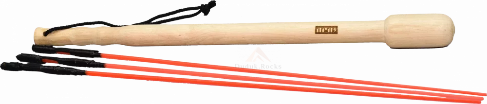 Vorot Bass Kopal-Dhol wooden hammer and three fiber sticks.